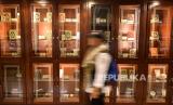 Pengunjung melintas di dekat almari berisi Alquran di Kompleks Percetakan Alquran Raja Fahd atau Majma Malik Fahd Li Thibaah Mushaf Syarif, Madinah, Arab Saudi, Kamis (27/6/2024). Percetakan Alquran yang mulai beroperasi sejak 1984 tersebut mampu memproduksi hingga 20 juta eksemplar Alquran per tahun. (FOTO : ANTARA FOTO/Sigid Kurniawan)