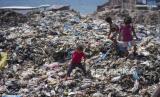 Anak-anak Palestina memilah sampah memilah sampah di tempat pembuangan sampah di kamp pengungsi Nuseirat, Jalur Gaza, Kamis (20/6/2024). Konflik yang terjadi di wilayah Gaza telah menghancurkan sistem sanitasi serta membuat sebagian besar penduduk mengungsi dan tinggal di tenda-tenda. Kondisi ini diperburuk oleh air yang terkontaminasi limbah dan tumpukan sampah yang semakin banyak. (FOTO : AP Photo/Abdel Kareem Hana)