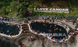 Foto udara sejumlah pengunjung berendam di pemandian air panas Cangar, Batu, Jawa Timur, Ahad (30/6/2024). Destinasi wisata yang terletak di kawasan Taman Hutan Raya Raden Soerjo itu kini telah selesai direnovasi oleh pemerintah setempat sehingga target kunjungan wisatawan 2024 sebanyak 12 juta orang di kawasan wisata unggulan Jawa Timur tersebut diharapkan dapat tercapai. (FOTO : ANTARA FOTO/Muhammad Mada)