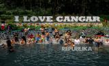 REPUBLIKA.CO.ID, BATU -- Sejumlah pengunjung berendam di pemandian air panas Cangar, Batu, Jawa Timur, Ahad (30/6/2024).