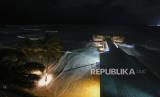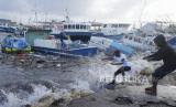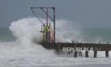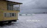 Ombak menghantam dermaga saat terjadinya Badai Beryl di Bridgetown, Barbados, Senin (1/7/2024). Badai Beryl yang dikategorikan berbahaya menerjang wilayah Barbados. Badai berupa hujan lebat, banjir, dan angin kencang itu menghancurkan kota. (FOTO : AP Photo/Ricardo Mazalan)