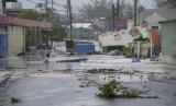 Suasana jalanan kota usai terjadinya Badai Beryl di Hastings, Barbados, Senin (1/7/2024). Badai Beryl yang dikategorikan berbahaya menerjang wilayah Barbados. Badai berupa hujan lebat, banjir, dan angin kencang itu menghancurkan kota. (FOTO : AP Photo/Ricardo Mazalan)