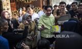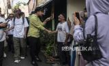 REPUBLIKA.CO.ID, JAKARTA -- Wakil Presiden Terpilih Gibran Rakabuming Raka membagikan susu saat blusukan di Gang I Kelurahan Pasar Manggis, Jakarta, Rabu (3/7/2024).