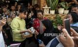Dalam kesempatan tersebut, putra sulung Presiden Joko Widodo itu membagikan buku dan susu gratis kepada anak-anak.