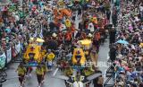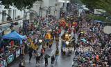 Iring-iringan seni budaya memeriahkan karnaval Asia Africa Festival (AAF) 2024 di Jalan Cikapundung, Kota Bandung, Jawa Barat, Sabtu (6/7/2024). Dalam kegiatan tersebut ditampilkan seni dan budaya dari sejumlah negara Asia dan Afrika, serta perwakilan kabupaten/kota dan komunitas seni. Asia Afrika Festival berlangsung dari Tanggal 6-7 Juli 2024. (FOTO : Edi Yusuf)