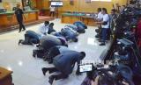 Kuasa hukum Pegi Setiawan melakukan sujud syukur usai Praperadilan Pegi Setiawan di Pengadilan Negeri Bandung, Jalan LRE Martadinata, Kota Bandung, Senin (8/7). Dalam sidang tersebut hakim tunggal Eman Sulaeman memutuskan penetapan tersangka terhadap pemohon berdasarkan surat ketetapan atas nama Pegi Setiawan dinyatakan tidak sah dan batal demi hukum. (FOTO : Edi Yusuf)