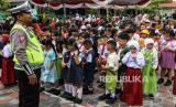 REPUBLIKA.CO.ID, PALANGKA RAYA -- Polisi menyampaikan materi lalu lintas kepada sejumlah peserta didik baru saat mengikuti Masa Pengenalan Lingkungan Sekolah (MPLS) di SD Negeri Percobaan Palangka Raya, Kalimantan Tengah, Senin (8/7/2024).