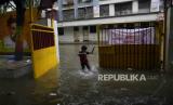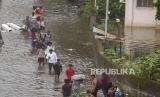 REPUBLIKA.CO.ID, MUMBAI -- Banjir menggenangi wilayah Mumbai, India, Senin (8/7/2024). Banjir setinggi sekitar 40 centimeter disebabkan oleh intensitas hujan yang tinggi.