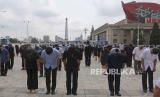 REPUBLIKA.CO.ID, PYONGYANG -- Warga mengheningkan cipta selama tiga menit untuk mengenang mantan pemimpin Kim Il Sung di Pyongyang, Korea Utara Senin (8/7/2024).