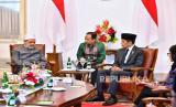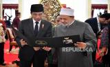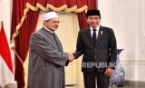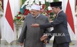 REPUBLIKA.CO.ID, JAKARTA -- Presiden Joko Widodo bersama Grand Syekh Al Azhar Imam Akbar Ahmed Al Tayeb bertemu di Istana Merdeka, Jakarta, Selasa (9/7/2024).