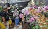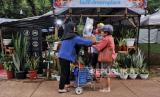 Pengunjung membeli tanaman saat berkunjung ke pameran Flona 2024 di Taman Lapangan Banteng, Jakarta, Rabu (10/7/2024). Pameran tersebut menyajikan beragam ribuan koleksi tanaman seperti tanaman obat-obatan, hiasan dan tanaman buah yang dijual mulai dari Rp30 ribu hingga jutaan rupiah. Pameran tersebut merupakan rangkaian peringatan HUT ke-497 Jakarta yang berlangsung hingga 2 Agustus mendatang. Pada pameran itu sejumlah UMKM dari lima wilayah Jakarta ikut turut meramaikan gelaran tersebut. (FOTO : Republika/Thoudy Badai)