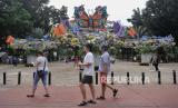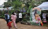 REPUBLIKA.CO.ID, JAKARTA -- Pengunjung melihat pameran Flona 2024 di Taman Lapangan Banteng, Jakarta, Rabu (10/7/2024).
