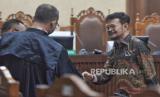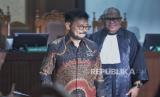 Terdakwa kasus dugaan pemerasan dan gratifikasi di Kementerian Pertanian Syahrul Yasin Limpo (SYL) bersiap untuk menjalani sidang dengan agenda pembacaan putusan di Pengadilan Tipikor, Jakarta, Kamis (11/7/2024). Majelis Hakim memvonis mantan Menteri Pertanian Syahrul Yasin Limpo dengan hukuman 10 tahun penjara dan denda Rp 300 juta subsider 4 bulan kurungan dalam tindak pidana pemerasan dan gratifikasi di lingkungan Kementerian Pertanian. (FOTO : Republika/Prayogi)