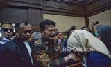 Terdakwa kasus dugaan pemerasan dan gratifikasi di Kementerian Pertanian Syahrul Yasin Limpo (SYL) usai menjalani sidang dengan agenda pembacaan putusan di Pengadilan Tipikor, Jakarta, Kamis (11/7/2024). Majelis Hakim memvonis mantan Menteri Pertanian Syahrul Yasin Limpo dengan hukuman 10 tahun penjara dan denda Rp 300 juta subsider 4 bulan kurungan dalam tindak pidana pemerasan dan gratifikasi di lingkungan Kementerian Pertanian. (FOTO : Republika/Prayogi)