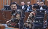 Terdakwa kasus dugaan pemerasan dan gratifikasi di Kementerian Pertanian Syahrul Yasin Limpo (SYL) menjalani sidang dengan agenda pembacaan putusan di Pengadilan Tipikor, Jakarta, Kamis (11/7/2024). Majelis Hakim memvonis mantan Menteri Pertanian Syahrul Yasin Limpo dengan hukuman 10 tahun penjara dan denda Rp 300 juta subsider 4 bulan kurungan dalam tindak pidana pemerasan dan gratifikasi di lingkungan Kementerian Pertanian. (FOTO : Republika/Prayogi)