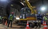 REPUBLIKA.CO.ID, JAKARTA -- Pekerja beraktivitas di area pembangunan jalur MRT Jakarta fase 2A CP 203 di terowongan Stasiun Kota, Jakarta, Kamis (11/7/2024).