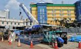 Pekerja beraktivitas di area pembangunan jalur MRT Jakarta fase 2A CP 203 di terowongan Stasiun Kota, Jakarta, Kamis (11/7/2024). PT MRT Jakarta (Perseroda) mencatat progres pembangunan paket CP 201 saat ini yakni meliputi Stasiun Bundaran HI-Monas mencapai 78,5 persen, CP 202 Stasiun Harmoni-Sawah Besar-Mangga Besar 32,2 persen dan CP 203 Stasiun Mangga Besr-Kota 57,89 persen. Stasiun MRT Kota tersebut dibangun di bawah tanah dengan kedalaman 24 meter dengan total panjang jalur dari Stasiun Mangga Besar hingga Stasiun Kota mencapai 1.400 meter. Untuk Stasiun Glodok terdiri dari dua lantai dengan panjang stasiun mencapai 240 meter sementara untuk Stasiun Kota terdiri dari 3 lantai dengan panjang stasiun 231,2 meter. Kedua stasiun tersebut ditargetkan rampung pada 2029 mendatang. (FOTO : Republika/Thoudy Badai)