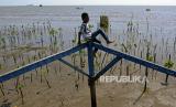 Seorang anak duduk di dermaga Hutan Mangrove Lantebung, Makassar, Sulawesi Selatan, Kamis (11/7/2024). Sulawesi Selatan memiliki hutan mangrove seluas 12.278 hektare yang tersebar di pesisir pantai di 18 kabupaten/kota dan bermanfaat sebagai pengendali banjir, penyaring polutan dan sedimentasi hingga menjadi sumber mata pencaharian masyarakat pesisir melalui pembudidayaan kepiting bakau. (FOTO : ANTARA FOTO/Hasrul Said)