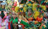 REPUBLIKA.CO.ID, BANYUWANGI -- Model memperagakan kostum dengan tema warisan budaya pada gelaran Banyuwangi Ethno Carnival (BEC) di Gesibu Blambangan, Banyuwangi, Jawa Timur, Sabtu (13/7/2024).