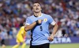 Pemain Uruguay Luis Suarez merayakan gol ke gawang Kananda dalam pertandingan perebutan juara ke 3 Copa America 2024 di Charlotte, North Carolina, AS, Sabtu (13/7/2024). Uruguay berhasil mengalahkan Kanada dalam perebutan tempat ketiga Copa America 2024. Setelah bermain imbang 2-2 dalam waktu normal, Uruguay menang lewat adu penalti atas Kanada dengan skor 4-3. (FOTO : EPA-EFE/ERIK S. LESSER)
