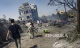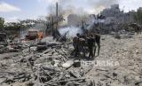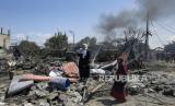 REPUBLIKA.CO.ID, GAZA -- Warga Palestina memeriksa kerusakan di lokasi yang terkena pemboman di Khan Younis, Jalur Gaza selatan, Sabtu (13/7/2024).
