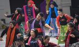 REPUBLIKA.CO.ID, JAKARTA -- Sejumlah anak mengikuti arahan instruktur saat latihan secara massal Tari Zapin Lancang Kuning asal Riau di Pos Bloc, Jakarta, Ahad (14/7/2024).