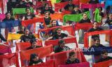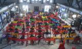 Sejumlah anak mengikuti arahan instruktur saat latihan secara massal Tari Zapin Lancang Kuning asal Riau di Pos Bloc, Jakarta, Ahad (14/7/2024). Kegiatan yang digelar Belantara Budaya Indonesia bekerja sama dengan Souvenir Lokal tersebut bertujuan mengenalkan sekaligus menumbuhkan kecintaan masyarakat khususnya generasi muda terhadap beraneka ragam budaya di Indonesia, termasuk tari-tari tradisional. (FOTO : ANTARA FOTO/Aditya Pradana Putra)