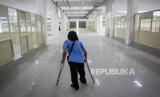 REPUBLIKA.CO.ID, SOLO -- Penyandang disabilitas berjalan di depan kios saat Uji Publik Fasilitas Difabel di Pasar Jongke, Solo, Jawa Tengah, Senin (15/7/2024).