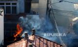 REPUBLIKA.CO.ID, DENPASAR -- Petugas memadamkan api yang membakar bangunan gedung Global Development Learning Network (GDLN) di Universitas Udayana Kampus Sudirman, Denpasar, Bali, Selasa (16/7/2024).