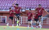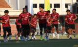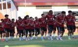 Sejumlah pesepak bola timnas Indonesia U-19 melakukan pemanasan saat latihan di Lapangan Thor, Surabaya, Jawa Timur, Selasa (16/7/2024). Timnas Indonesia U-19 akan menghadapi timnas Filipina U-19 pada petandingan Grup A ASEAN U-19 Boys Championship atau AFF U-19 di Stadion Gelora Bung Tomo pada Rabu (17/7) malam. (FOTO : ANTARA FOTO/Moch Asim)