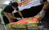 Polisi mengangkat bungkusan narkotika jenis sabu-sabu usai konferensi pers Ditresnarkoba Polda Kalbar di Pontianak, Kalimantan Barat, Rabu (17/7/2024). Direktorat Reserse Narkoba Polda Kalbar berhasil menggagalkan penyelundupan 19 kilogram sabu-sabu dari Kalbar tujuan Jakarta melalui jalur laut dengan menggunakan kapal, dan menangkap empat tersangka pelaku berinisial BR (warga binaan Lapas Kelas IIA Pontianak), LS, JS dan FAP. (FOTO : ANTARA FOTO/Jessica Wuysang)