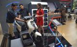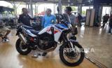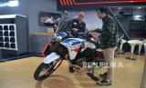 Pengunjung mendapatkan informasi mengenai motor Honda CRF1100L Africa Twin di booth PT Astra Honda Motor (AHM) dalam gelaran Gaikindo Indonesia International Auto Show (GIIAS) 2024, ICE BSD, Tangerang, Banten, Kamis (18/7/2024). PT Astra Honda Motor (AHM) turut hadir di ajang GIIAS 2024 dengan menampilkan berbagai produk sepeda motor berteknologi tinggi. Salah satu yang ditampilkan adalah Honda EM1 e: sebagai simbol komitmen AHM memasuki era elektrifikasi. Sepeda motor listrik ini tampil bersama model-model canggih lainnya, termasuk Honda CRF1100L Africa Twin terbaru yang untuk pertama kalinya meluncur di Indonesia. (FOTO : Republika/Prayogi)