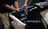 Salah satu bagian pada motor Honda EM1 e: yang turut hadir di booth PT Astra Honda Motor (AHM) dalam gelaran Gaikindo Indonesia International Auto Show (GIIAS) 2024, ICE BSD, Tangerang, Banten, Kamis (18/7/2024). PT Astra Honda Motor (AHM) turut hadir di ajang GIIAS 2024 dengan menampilkan berbagai produk sepeda motor berteknologi tinggi. Salah satu yang ditampilkan adalah Honda EM1 e: sebagai simbol komitmen AHM memasuki era elektrifikasi. Sepeda motor listrik ini tampil bersama model-model canggih lainnya, termasuk Honda CRF1100L Africa Twin terbaru yang untuk pertama kalinya meluncur di Indonesia. (FOTO : Republika/Prayogi)