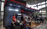 Pengunjung mendapatkan informasi mengenai motor Honda EM1 e: di booth PT Astra Honda Motor (AHM) dalam gelaran Gaikindo Indonesia International Auto Show (GIIAS) 2024, ICE BSD, Tangerang, Banten, Kamis (18/7/2024). PT Astra Honda Motor (AHM) turut hadir di ajang GIIAS 2024 dengan menampilkan berbagai produk sepeda motor berteknologi tinggi. Salah satu yang ditampilkan adalah Honda EM1 e: sebagai simbol komitmen AHM memasuki era elektrifikasi. Sepeda motor listrik ini tampil bersama model-model canggih lainnya, termasuk Honda CRF1100L Africa Twin terbaru yang untuk pertama kalinya meluncur di Indonesia. (FOTO : Republika/Prayogi)