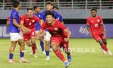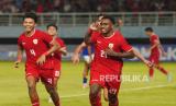 REPUBLIKA.CO.ID, SURABAYA -- Sejumlah pesepak bola Timnas Indonesia berselebrasi usai menang atas Timnas Kamboja pada pertandingan penyisihan Grup A Piala ASEAN U-19 Boys Championship atau AFF U-19 di Stadion Gelora Bung Tomo, Surabaya, Jawa Timur, Sabtu (20/7/2024).