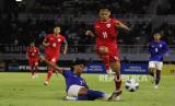 Pesepak bola Timnas Indonesia M Riski Afrisal (11) berupaya melewati pesepak bola Timnas Kamboja Sonn Thavisiv dalam pertandingan penyisihan Grup A Piala ASEAN U-19 Boys Championship atau AFF U-19 di Stadion Gelora Bung Tomo, Surabaya, Jawa Timur, Sabtu (20/7/2024). Indonesia mengalahkan Kamboja dengan skor 2-0. (FOTO : ANTARA FOTO/Rizal Hanafi)