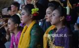 Sejumlah penari menunggu giliran tampil saat acara Bandung Barat Menari 2024 dalam rangka peringatan hari tari sedunia yang digelar Komunitas Sekar Kliwon, di kawasan Lembah Dewata, Lembang, Kabupaten Bandung Barat, Ahad (21/7/2024). Sedikitnya 500 penari dari 30 sanggar yang ada di Jawa Barat, Banten dan Jakarta, selama enam jam tampil secara bergiliran membawakan berbagai tarian tradisional salah satunya Ibing Baya Belenderan. (FOTO : Edi Yusuf)