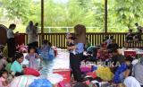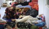 Sejumlah korban banjir beristirahat saat mengungsi di Kodim 1512/Weda Kabupaten Halmahera Tengah, Maluku Utara, Selasa (23/7/2024). Berdasarkan data Kodim 1512/Weda jumlah pengungsi banjir luapan Sungai Kobe sebanyak 300 warga di dua desa yaitu Desa Lukulamo dan Trans Kobe dan diprediksi jumlah tersebut akan bertambah karena beberapa lokasi belum bisa diakses. (FOTO : ANTARA FOTO/Andri Saputra)