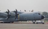 Pesawat Airbus A400M Atlas parkir di Apron Selatan Pangkalan Udara Halim Perdanakusuma, Jakarta, Rabu (24/7/2024). Sebanyak dua pesawat Rafale, dua pesawat Airbus A400M Atlas, dan dua pesawat Airbus A330MRTT Phoenix akan singgah di Jakarta hingga 27 Juli 2024 dalam rangka menyelesaikan Misi Pegase 2024 dan memperkuat kerja sama pertahanan Angkatan Udara Indonesia dengan Prancis. (FOTO : ANTARA FOTO/Asprilla Dwi Adha)