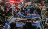 REPUBLIKA.CO.ID, DEPOK -- Tenaga medis dan relawan mengevakuasi pasien dari Rumah Sakit Arafiq yang terbakar ke pelataran parkir Masjid Al-Muhajirin, Kota Depok, Jawa Barat, Rabu (24/7/2024).