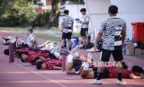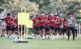 Sejumlah pesepak bola Timnas Indonesia mengikuti latihan jelang pertandingan semifinal ASEAN U-19 Boys Championship atau AFF U-19 di Lapangan THOR, Surabaya, Jawa Timur, Jumat (26/7/2024). Timnas Indonesia akan bertemu Malaysia dalam semifinal ASEAN U-19 Boys Championship atau AFF U-19 di Stadion Gelora Bung Tomo pada Sabtu (27/7). (FOTO : ANTARA FOTO/Rizal Hanafi)
