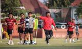 Pelatih Timnas U-19 Indonesia Indra Sjafri (keempat kiri) memberikan arahan saat memimpin latihan jelang pertandingan semifinal ASEAN U-19 Boys Championship atau AFF U-19 di Lapangan THOR, Surabaya, Jawa Timur, Jumat (26/7/2024). Timnas Indonesia akan bertemu Malaysia dalam semifinal ASEAN U-19 Boys Championship atau AFF U-19 di Stadion Gelora Bung Tomo pada Sabtu (27/7). (FOTO : ANTARA FOTO/Rizal Hanafi)