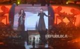 Penyanyi Anggun C Sasmi bersama Isyana Sarasvati menghibur para penggemarnya saat konser di Jakarta Convention Center (JCC), Ahad (28/7/2024). Konser EnchantingAnggun ini merupakan konsernya yang keempat kalinya di Indonesia. Dalam konser tersebut Anggun menyanyikan 20 lagu yang mana di antaranya dinyanyikan solo maupun berkolaborasi dengan musisi lain. Musisi yang terlibat di konser ini yaitu Ahmad Albar, Ian Antono, Isyana Sarasvati, dan Fabio Asher. (FOTO : Republika/Prayogi)