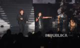 Penyanyi Anggun C Sasmi bersama Ahmad Albar menghibur para penggemarnya saat konser di Jakarta Convention Center (JCC), Ahad (28/7/2024). Konser EnchantingAnggun ini merupakan konsernya yang keempat kalinya di Indonesia. Dalam konser tersebut Anggun menyanyikan 20 lagu yang mana di antaranya dinyanyikan solo maupun berkolaborasi dengan musisi lain. Musisi yang terlibat di konser ini yaitu Ahmad Albar, Ian Antono, Isyana Sarasvati, dan Fabio Asher. (FOTO : Republika/Prayogi)