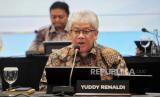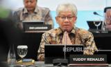 Direktur Utama bank bjb Yuddy Renaldi saat sesi pemaparan capaian saat Earning Call di Jakarta, Selasa (30/7/2024). Pada Triwulan II 2024, bank bjb mencatat kinerja yang tetap terjaga dengan berbagai capaian diantaranya kinerja bank bjb dari sisi aset hingga akhir Juni 2024 bertumbuh sebesar 16,6 persen year on year (YoY) atau sebesar Rp207,3 triluin. Selain itu, bank bjb berhasil menjaga keseimbangan dalam hal Dana Pihak Ketiga (DPK) dengan penyaluran kredit pada Juni 2024 tercatat sebesar Rp150,2 triliun atau tumbuh 16,4 persen YoY. (FOTO : Republika/Thoudy Badai)