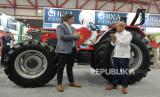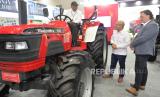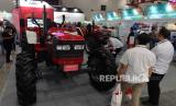 Pengunjung melihat produk Mahindra Tractor yang baru diluncurkan di Jakarta, Selasa (30/7/2024). RMA Indonesia dan Mahindra FES memperkenalkan lima tipe traktor Mahindra Tractor sekaligus, di antaranya OJA 3140 4WD, 5050 4WD, 6060 4WD, 6075 4WD, dan 9500 4WD. Adapun harganya dijual mulai dari Rp 300 jutaan untuk varian termurah. (FOTO : Republika/Edwin Dwi Putranto)