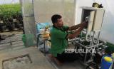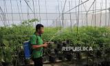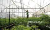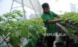 Petugas merawat tanaman cabai rawit di kebun biotech Green House di Pasar Mayestik, Kebayoran Baru, Jakarta Selatan, Rabu (31/7/2024). Perusahaan Daerah Pasar Jaya memanfaatkan lahan dengan kembangkan konsep rumah hijau atau green house di atap bangunan Pasar Mayestik. Lahan seluas 75 meter persegi tersebut dimanfaatkan untuk menanam cabai dengan teknik biotech sebagai percontohan yang nantinya di kembangkan di setiap pasar di Jakarta. Setiap minggu petugas memanen cabai kurang lebih 3 sampai 5 kilogram, dari hasil dari panen tersebut nantinya dijual murah ke sejumlah pedagang di Pasar Mayestik. (FOTO : Republika/Thoudy Badai)
