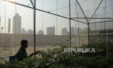 Lahan di atap Pasar Mayestik dikembangkan untuk green house .