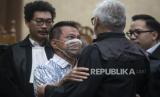 Terdakwa kasus dugaan korupsi pengadaan pesawat CRJ-1000 dan ATR 72-600 maskapai PT Garuda Indonesia Rekso Abadi Soetikno Soedarjo (kanan) berpelukan dengan kerabatnya usai mengikuti sidang putusan di Pengadilan Tipikor, Jakarta, Rabu (31/7/2024). Majelis Hakim memvonis bebas mantan Direktur PT Mugi Rekso Abadi itu karena tidak terbukti melakukan tindak pidana korupsi dalam kasus tersebut. (FOTO : ANTARA FOTO/Aprillio Akbar)