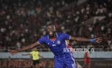 REPUBLIKA.CO.ID, SOLO -- Pesepak bola Arema FC Charles Lokolingoy berselebrasi usai mencetak gol ke gawang Persis Solo pada pertandingan Semifinal Piala Presiden 2024 di Stadion Manahan, Solo, Jawa Tengah, Rabu (31/7/2024).